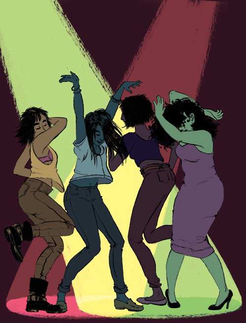 Promotional work. Inspiration taken from when friends and I used to go out dancing when we were young and had the energy to do such things. Line work was done with ink and then colored digitally.